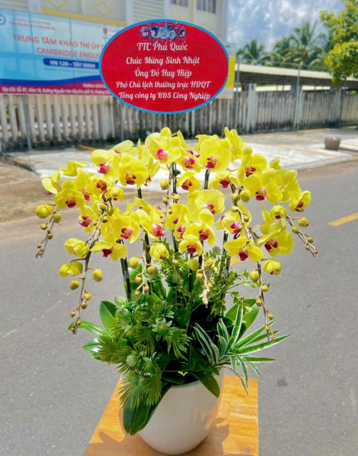 Lan hồ điệp vàng tượng trưng cho tài lộc, thịnh vượng và thành công, rất phù hợp làm quà tặng trong các dịp: