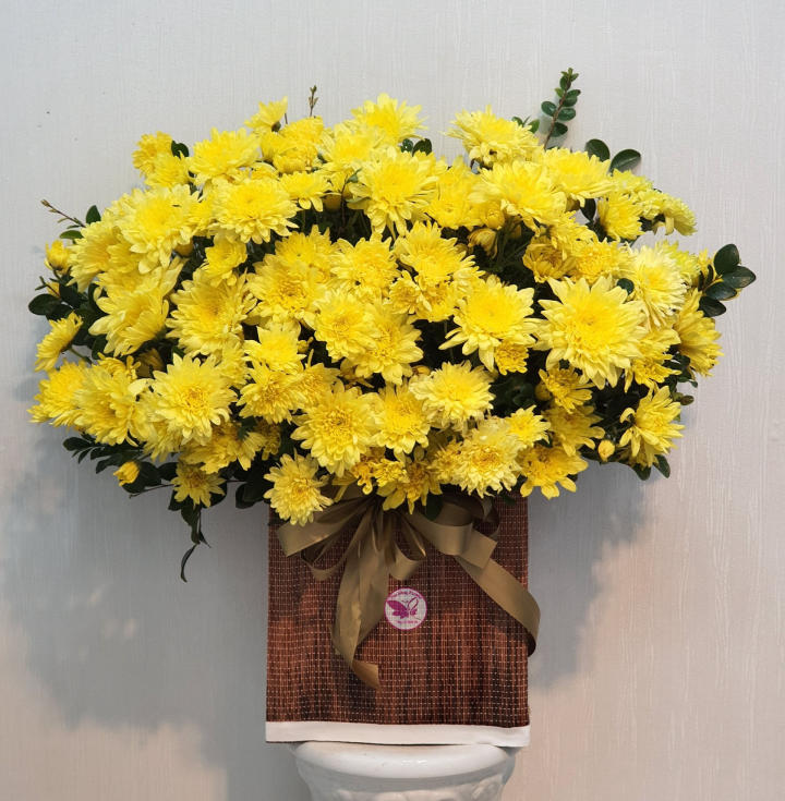 Giỏ hoa cúc vàng mang thông điệp của lòng biết ơn và lời tiễn biệt chân thành, tượng trưng cho sự sáng trong, thanh cao và kiên định – như cách người ra đi đã sống và cống hiến.