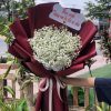 Bó hoa được thiết kế dáng tròn lớn, cắm dày hoa hồng đỏ nhung rực rỡ, tượng trưng cho đam mê, trân trọng và cảm xúc sâu sắc. Xen kẽ là hoa baby trắng và lá bạch đàn xanh, giúp tổng thể thêm hài hòa, nổi bật và tinh tế.